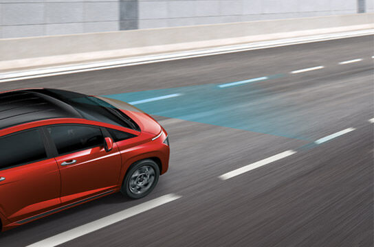 Kamera tampak depan mendeteksi ada jalur (di tepi jalan) untuk memantau posisi kendaraan tetap pada jalur awal. Sistem akan memperingatkan pengemudi jika kendaraan tersebut meninggalkan jalur tanpa menggunakan lampu sein, dan secara otomatis akan membantu mengarahkan kemudi untuk mencegah kendaraan beralih dari jalur yang semestinya.